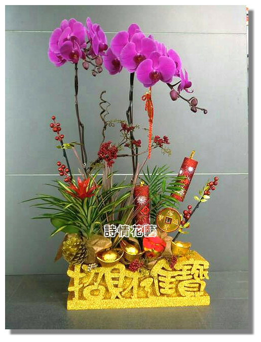 材料:蘭花+葉材+年節飾品