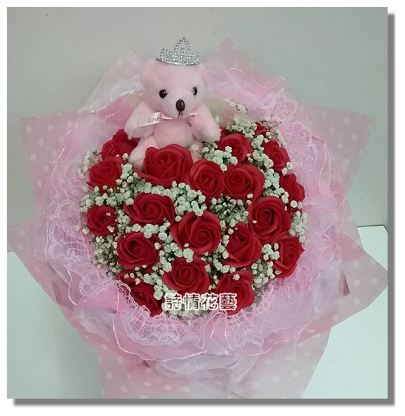 花材:香皂玫瑰花+一隻玩偶